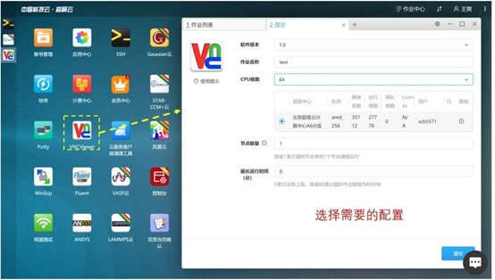 根据计算需求,我们选择amd_256队列(代表CPU为AMD,最大使用内存256G),核心数选择64(可以根据自己需求使用更多核心),提交之后,等待连接成功,即可进入可视化界面。