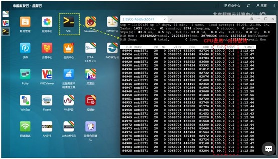 在计算过程中,可以通过桌面软件SSH,输入指定的简易代码,方便地查询到调用核心以及内存空间的使用情况,如图所示:
