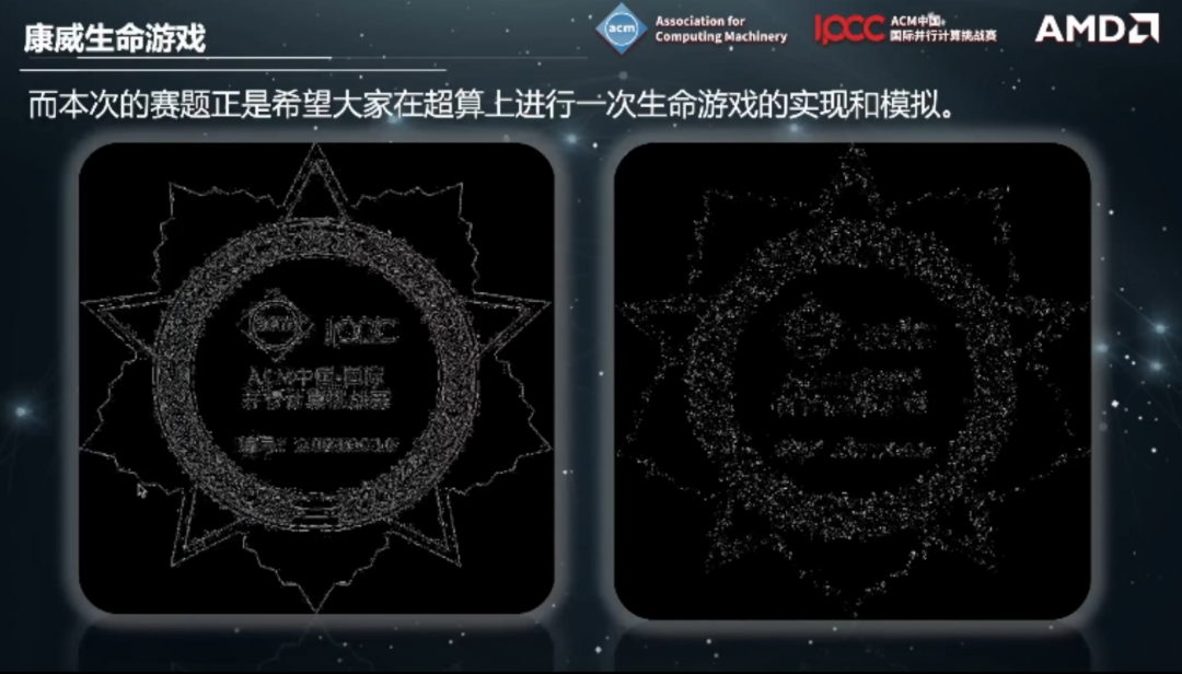 本次全明星赛的目的之一就是促进学习交流,为今年IPCC赛事的赛前预热,希望大家能够在有限的一上午时间内,利用现代化的代码编程技术,对经典“康威生命游戏”进行再优化。相比之前的比赛,本次全明星赛带有更多的轻松气氛,大家线上聚在一起交流,学习为主比拼为辅,真正的“友谊第一比赛第二”。